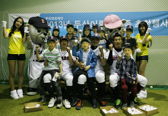 두산베어스 선수단 역시 뜻 깊은 행사에 동참해 두산어린이 가족에게 사인볼을 선물하고 홍성흔, 임재철, 정수빈과 포토타임을 가졌다.