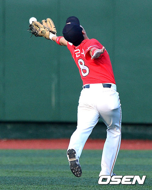 11일 오후 서울 목동야구장에서 열린 '2013 한국야쿠르트 세븐 프로야구' 넥센 히어로즈와 SK 와이번스의 경기, 4회말 2사에서 SK 정근우가 넥센 박병호의 타구를 아쉽게 놓치고 있다.