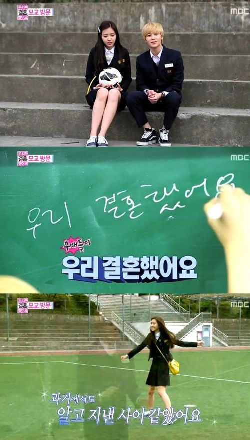 태민과 손나은은 11일 오후 방송된 MBC '우리 결혼했어요 4'에서 교복을 입고 청담중을 찾았다. 두 사람은 알고 보니 같은 중학교를 졸업한 동문이었다.