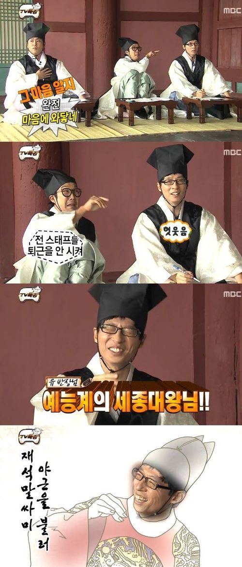 또한 강의 도중 신하들에게 일을 많이 시켰다는 세종대왕에 대한 설명이 등장했고, 하하는 유재석을 가리키며 눈치를 줬다. 길 또한 "신하들의 마음이 와 닿는다"라고 거들어 웃음을 자아냈다.