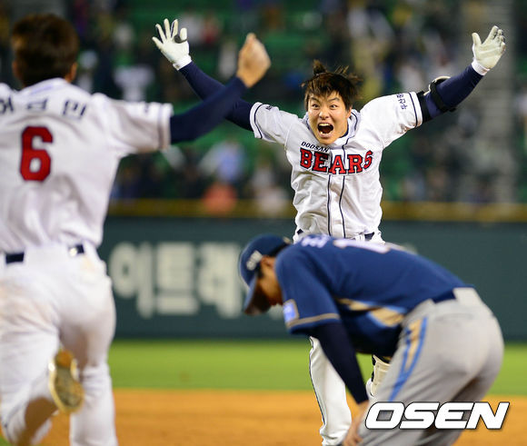 1사 2루 이어진 득점 찬스에서 이종욱은 최금강과 풀카운트까지 가는 대결 끝 삼진으로 물러나고 말았다. 2사 2루. 그러나 민병헌이 3-유간을 뚫는 적시타를 때려냈다. 6-5. 경기가 그대로 끝난 순간이다. NC 입장에서는 베테랑 이현곤이 조영훈의 송구를 떨군 것이 두고두고 아쉬웠다.