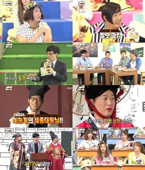 이날 멤버들은 알기 쉬운 설명으로 아이돌들을 학생으로 한 강단에 섰다. 제일 먼저 강사로 나선 이는 유재석, 길, 하하였다. 하하는 세종대왕으로 분했고 길은 태조 왕건 옷을 입고 나서 적극적으로 임했다.