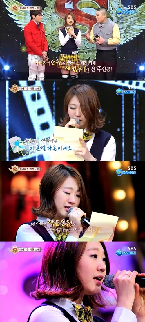 11일 방송된 SBS '놀라운 대회 스타킹'(이하 스타킹)에는 희귀암 판정을 받은 아버지를 위해 노래를 부르는 정다은 씨가 출연했다.