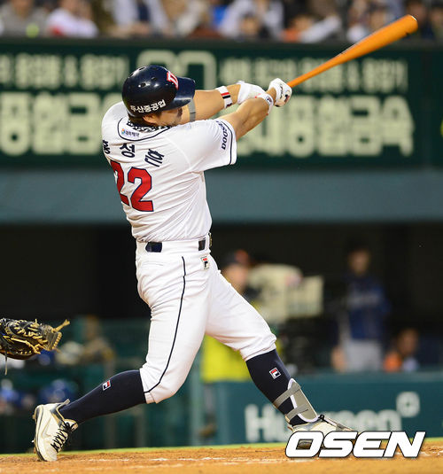 11일 오후 서울 잠실구장에서 열린 '2013 한국야쿠르트 세븐 프로야구' 두산 베어스와 NC다이노스의 경기 8회말 1사 1루 홍성흔이 투런홈런을 치고 있다.