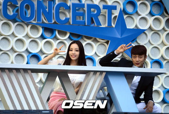 11일 오후 서울시 성산동 서울 월드컵경기장에서 진행된 '사랑한다 대한민국 2013 드림콘서트'에서 구하라와 윤두준이 취재진의 카메라를 바라보며 포즈를 취하고 있다.