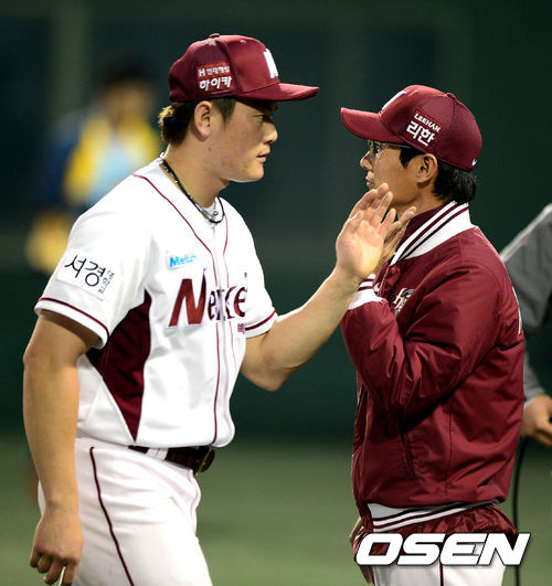 경기후 넥센 염경엽 감독이 동점 솔로포와 2타점 적시타를 날린 이성열과 하이파이브를 하고 있다./jpnews@osen.co.kr