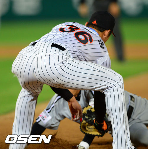 대주자 양영동 잡는 박종윤,'이제 동점 주자는 없다'