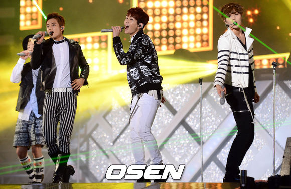 11일 오후 서울시 성산동 서울 월드컵경기장에서 진행된 '사랑한다 대한민국 2013 드림콘서트'에서 샤이니가 멋진무대를 선보이고 있다.