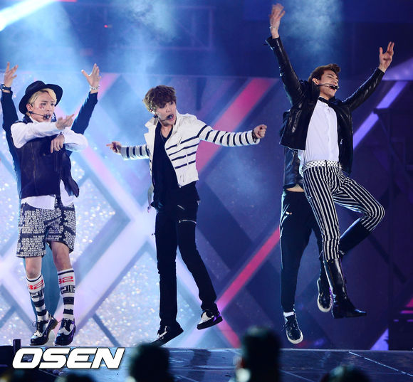11일 오후 서울 마포구 서울월드컵경기장에서 열린 '드림콘서트'에서 샤이니가 화려한 무대를 선보이고 있다.