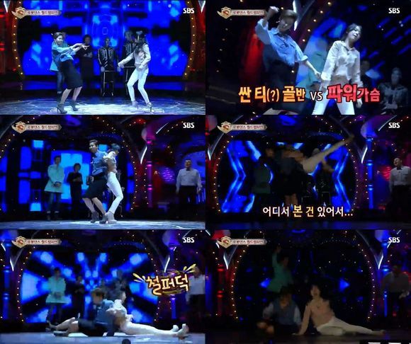 김나영과 민아는 지난 11일 오후 방송된 '스타킹'에서 로봇 댄스 월드 챔피언이 선보인 로봇춤에 도전하다 엉덩방아를 찧었다.