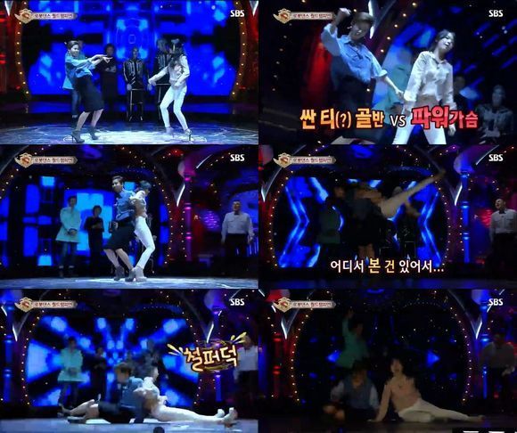 하이힐을 신은 김나영은 민아를 뒤로 들쳐 업었고, 민아는 김나영에게 매달려 다리를 허우적대는 춤을 췄다. 이어 힘에 받친 김나영의 다리가 풀리고 두 사람은 쿵 소리와 함께 바닥으로 곤두박질쳤다.