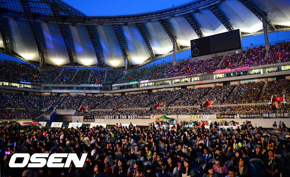 11일 오후 서울 마포구 서울월드컵경기장에서 열린 '드림콘서트'에서 팬들이 경기장을 가득 메우고 있다.
