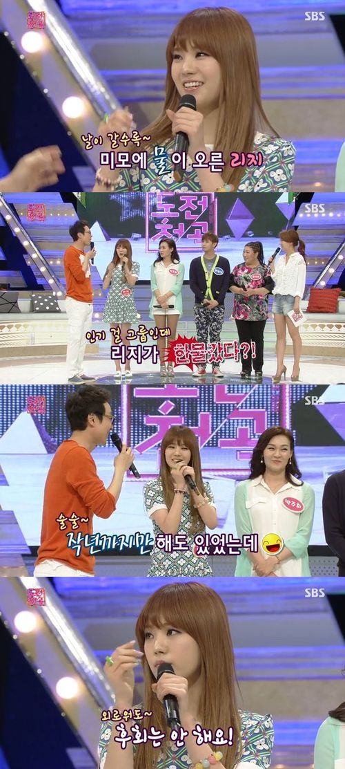 MC 이휘재는 12일 방송된 SBS ‘도전천곡’에서 “리지에게 외모에 물이 올랐다고 했는데 리지가 한물갔다고 하더라”라고 밝혔다.