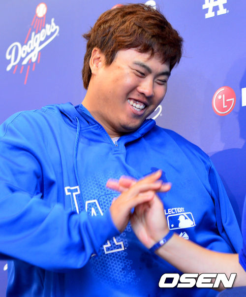 승리 투수가 된 다저스 류현진이 기자회견을 마치고 통역 마팀 김과 하이파이브를 나누며 미소짓고 있다. 류현진은 기자회견에서 오늘 어머니 박승순(54) 씨의 생일에 호투를 펼쳐 더욱 기뻤다고 전했다. / dreamer@osen.co.kr