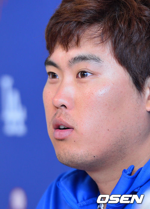 승리 투수가 된 다저스 류현진이 경기 종료 후 열린 기자회견에 참석해 취재진의 질문에 답하고 있다./ dreamer@osen.co.kr