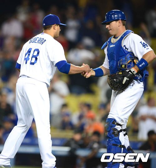 8연패를 탈출한 다저스 하비 게라와 엘리스가 기뻐하고 있다./ dreamer@osen.co.kr