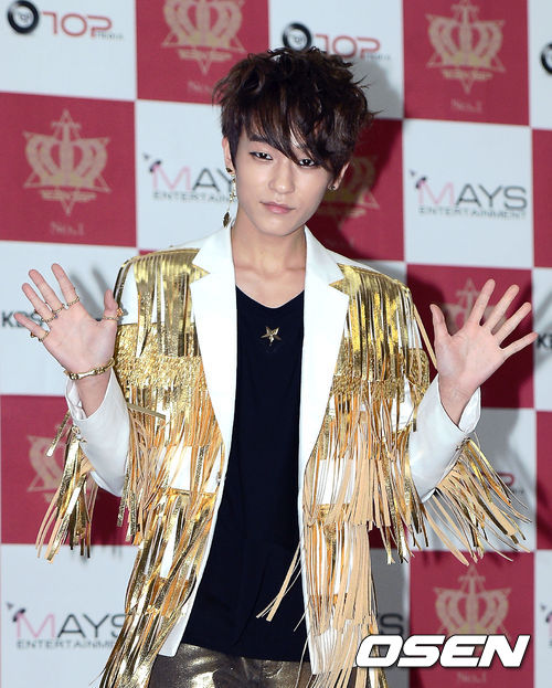 12일 오후 고려대 화정체육관에서 진행된 틴탑 첫 단독 콘서트 '2013 틴탑 넘버원 아시아 투어'에 앞서 진행된 기자회견에서 틴탑 엘조가 포토타임을 갖고 있다.