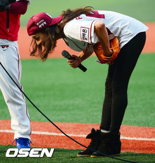 12일 오후 서울 목동구장에서 2013 한국야쿠르트 세븐프로야구 넥센 히어로즈와 SK 와이번스의 경기가 열릴 예정인 가운데 경기 전 할리우드 여배우 미셀 로드리게즈(Michelle Rodriguez)가 시구 전 인사를 하고 있다.