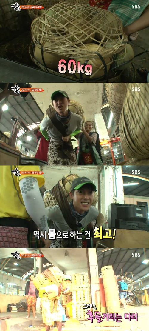 가장 먼저 당첨된 멤버는 강호동. 강호동은 58kg의 짐을 나르다 괴로워 했다. 이어 김현중이 겐동에 나섰다.