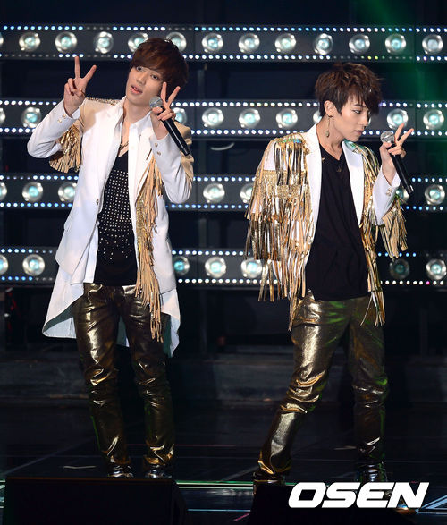 12일 오후 고려대 화정체육관에서 진행된 틴탑 첫 단독 콘서트 '2013 틴탑 넘버원 아시아 투어'에서 틴탑 니엘과 엘조가 멋진무대를 선보이고 있다.