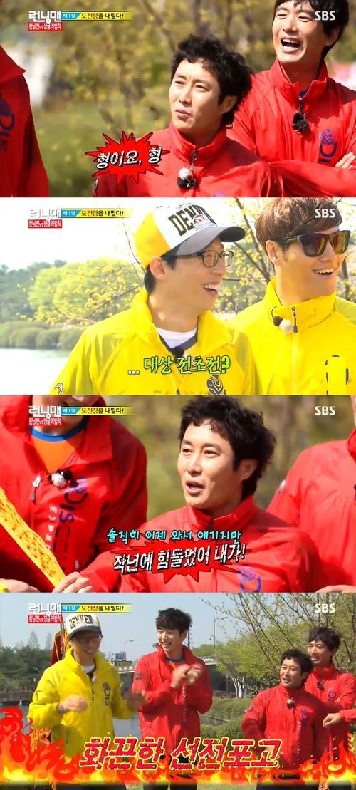 이날 오프닝에서 '정글' 팀이 된 하하가 유재석과 김병만의 대결을 부추긴 가운데 김병만보다 형인 유재석이 김병만의 이름을 부르며 주춤해 했다.