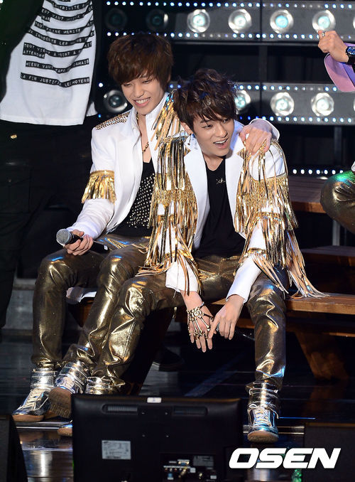 12일 오후 고려대 화정체육관에서 진행된 틴탑 첫 단독 콘서트 '2013 틴탑 넘버원 아시아 투어'에서 틴탑 니엘과 엘조가 멋진무대를 선보이고 있다.