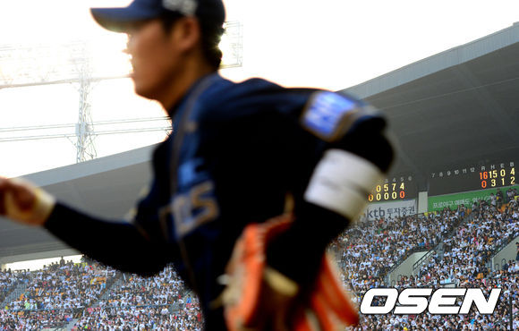 12일 오후 서울 잠실구장에서 열린 2013 한국야쿠르트 세븐프로야구 두산 베어스와 NC 다이노스의 경기, NC가 5회말 수비를 위해 그라운드로 들어서고 있다. NC는 5회초까지 15안타에 16득점을 올리며 타선이 불을 뿜고 있다. 1경기 10득점 이상을 올린 것도 창단 이래 처음이다.