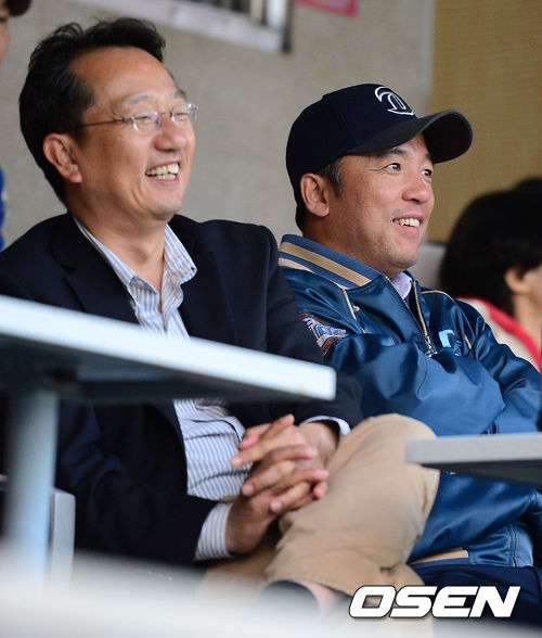 12일 오후 서울 잠실구장에서 열린 2013 한국야쿠르트 세븐프로야구 두산 베어스와 NC 다이노스의 경기, NC 이태일 대표와 김택진 구단주가 경기를 지켜보고 있다.