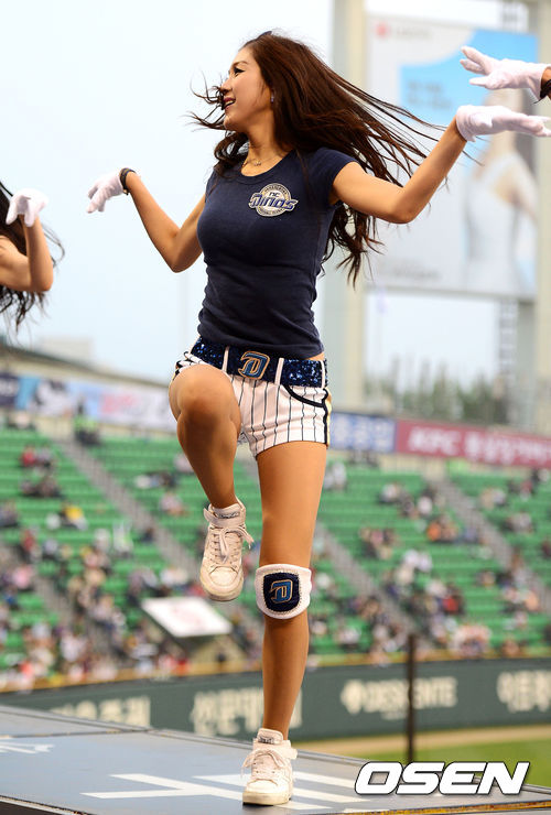 12일 오후 서울 잠실구장에서 열린 2013 한국야쿠르트 세븐프로야구 두산 베어스와 NC 다이노스의 경기, NC 치어리더 김연정이 멋진 무대를 선보이고 있다.