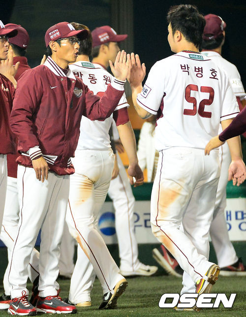 경기를 마치고 넥센 박병호와 염경엽 감독이 하이파이브를 하고 있다. / rumi@osen.co.kr