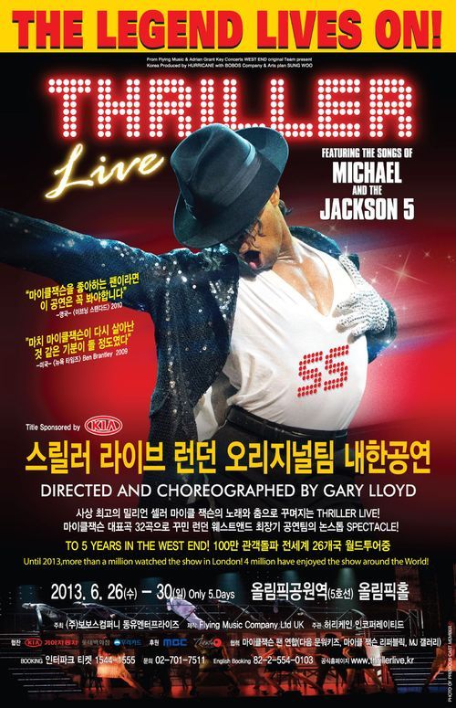 전세계에서 최초로 마이클 잭슨을 소재로 한 '스릴러 라이브'는 그가 살아있던 2006년 초연돼 지금까지 전세계 25개국에서 400만 명을 돌파한 콘서트형 뮤지컬이다. 2010년에는 '웨스트엔드에서 꼭 봐야 할 뮤지컬 2위'에 뽑히기도 했으며 올 초에는 웨스트엔드에서만 100만 명의 관객을 돌파하기도 했다.