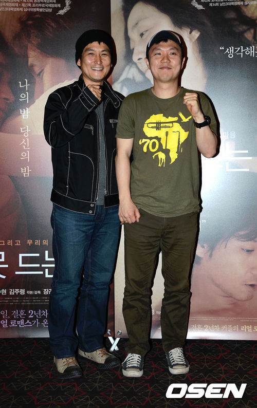 13일 오후 서울 왕십리 CGV에서 진행된 영화 '잠 못드는 밤' 언론배급시사회에서 김수현과 장건재 감독이 포토타임을 갖고 있다.