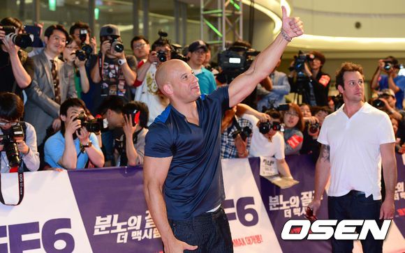 13일 오후 서울 영등포 타임스퀘어에서 진행된 영화 '분노의 질주: 더 맥시멈'(저스틴 린 감독) 레드카펫 행사에서 배우 빈 디젤이 취재진을 향해 포즈를 취하고 있다.