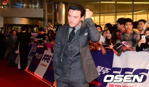 13일 오후 서울 영등포 타임스퀘어에서 진행된 영화 '분노의 질주: 더 맥시멈'(저스틴 린 감독) 레드카펫 행사에서 배우 루크 에반스가 취재진을 향해 포즈를 취하고 있다.
