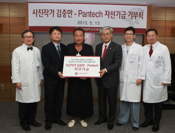 팬택이 소외계층 안과 수술 지원을 위해 유명 사진작가 김중만씨와 함께 진행했던 ‘베가의 눈으로 본 세상-아이즈 오브 베가(EYES OF VEGA)’ 사진전의 수익금 4500만원 전액을 13일 고려대 의료원에 전달했다. 이날 전달식에는 팬택 조영식 상무와 김중만 작가, 김린 의무부총장 등 고려대 의료원 관계자들이 참석했다.