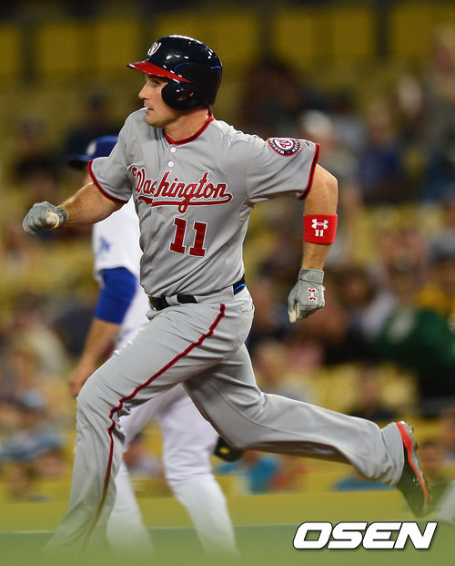 14일(이하 한국시간) 미국 캘리포니아 로스앤젤레스 다저스타디움에서 '2013 메이저리그' LA 다저스와 워싱턴 내셔널스의 경기가 열렸다. 3회초 워싱턴 공격 1사 만루 상황 4번 라이언 짐머맨이 2타점 우측 2루타를 날리고 2루를 향해 뛰고 있다.