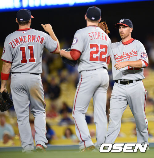 승리를 거둔 워싱턴 짐머맨과 라로시가 인사를 나누고 있다./ dreamer@osen.co.kr