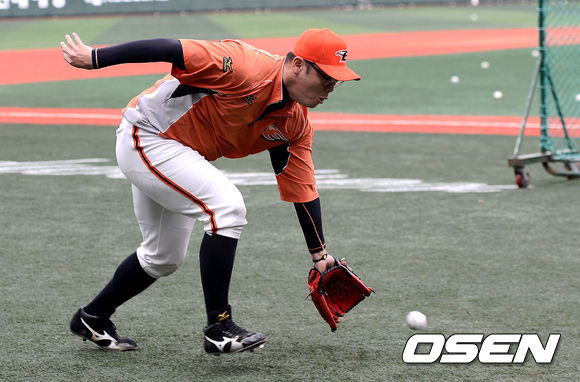 14일 오후 서울 목동구장에서 열리는 '2013 한국야쿠르트 세븐프로야구' 넥센 히어로즈와 한화 이글스의 경기에 앞서 한화 송창식이 수비훈련을 하고 있다.