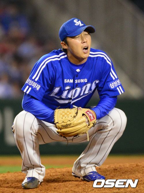 14일 오후 서울 잠실야구장에서 열린 2013 한국야쿠르트 세븐프로야구 두산 베어스와 삼성 라이온즈의 경기, 5회말 2사 1,2루에서 두산 김동주에게 볼넷을 허용한 삼성 배영수가 아쉬운 표정을 짓고 있다.