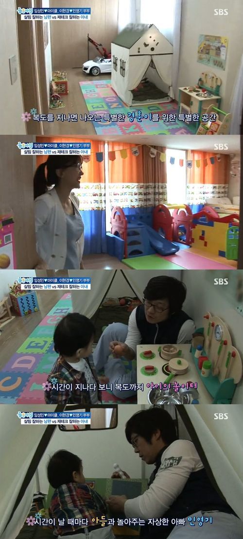 이들 부부의 집에는 아들을 위한 방이 따로 있었다. 큰 평수의 방 안에는 마치 키즈카페 수준의 놀이기구들이 놓여 있었고 복도까지 놀이공간으로 꾸며져 있었다.