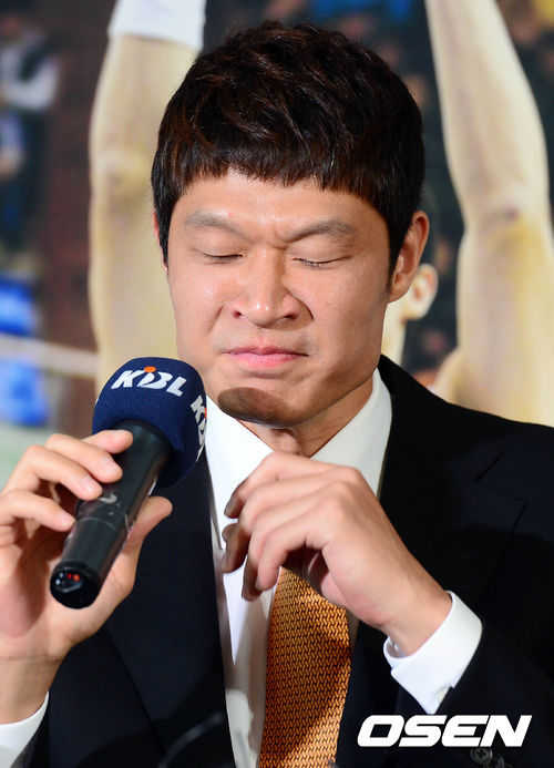 이규섭이 15일 오전 서울 논현동 KBL센터에서 은퇴 기자회견에서 취재진들과 질의응답 시간을 갖는 중 울컥이고 있다.