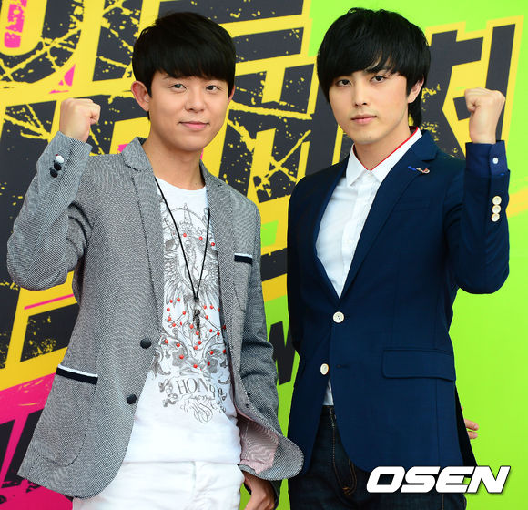 15일 오후 일산 MBC 드림센터 1층 다목적 세미나홀 앞에서 열린 MBC 새 예능 '파이널 어드벤처' 제작발표회의 포토월 행사에서 토니안과 정희철이 포토타임을 갖고 있다.
