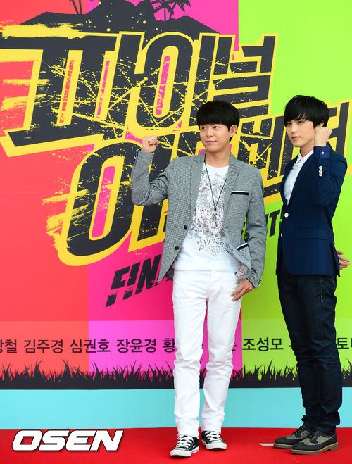 15일 오후 일산 MBC 드림센터 1층 다목적 세미나홀 앞에서 열린 MBC 새 예능 '파이널 어드벤처' 제작발표회의 포토월 행사에서 토니안과 정희철이 포토타임을 갖고 있다.