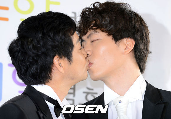 김조광수와 그의 동성 파트너가 키스를 나누고 있다.