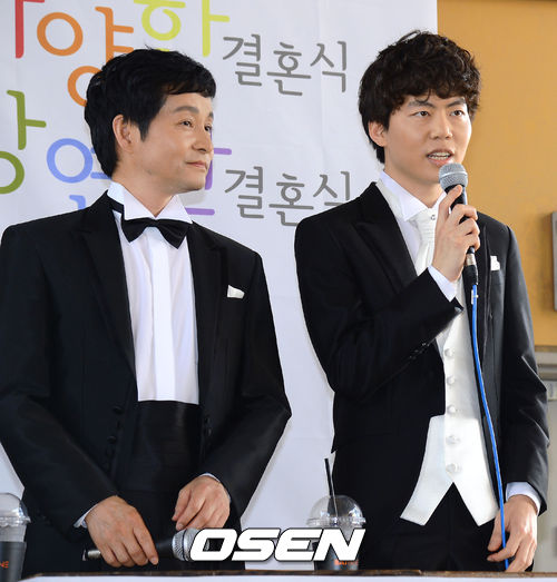 영화 제작자 겸 감독인 김조광수가 15일 오후 서울 동작구 아트나인 야외무대에서 동성연인과 결혼식 기자회견을 가졌다.