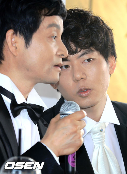 영화 제작자 겸 감독인 김조광수가 15일 오후 서울 동작구 아트나인 야외무대에서 동성연인과 결혼식 기자회견을 가졌다.