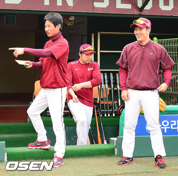 김병현,'염경엽 감독 옆에서 환한 미소'