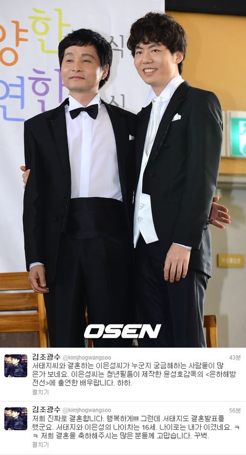 앞서 김조 감독은 "저희 진짜로 결혼합니다. 행복하게! 그런데 서태지도 결혼 발표를 했군요. 서태지와 이은성의 나이차는 16세. 나이로는 내가 이겼네요. 저희 결혼을 축하해주시는 많은 분들께 고맙습니다. 꾸벅"이라는 글을 올리며 같은날 결혼 발표를 한 서태지 커플을 언급했다.