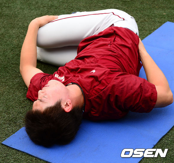 15일 오후 서울 목동구장에서 열린 2013 한국야쿠르트 세븐프로야구 넥센 히어로즈와 한화 이글스의 경기, 경기 전 넥센 이성열이 몸을 풀고 있다.