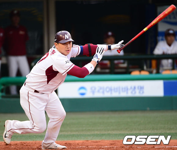 15일 오후 서울 목동구장에서 열린 2013 한국야쿠르트 세븐프로야구 넥센 히어로즈와 한화 이글스의 경기, 2회말 2사 주자 1,3루 넥센 허도환이 우익수 앞 1타점 적시타를 날리고 있다.